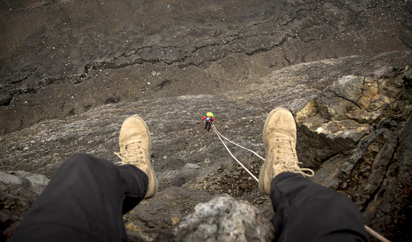 去火山口的二级阶梯扎营,需要经过一个令人腿软的峭壁。