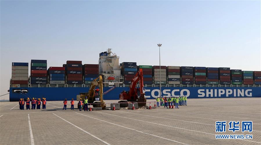 这是2017年11月5日,在阿拉伯联合酋长国阿布扎比,中远海运港口有限公司举行中远海运港口阿布扎比码头正式动工暨场站租赁签约仪式,标志着中国和阿联酋“一带一路”项目建设取得新进展。新华社记者苏小坡 摄