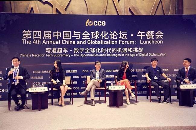在大数据时代,中国巨大的人口基数和移动互联网领域的飞速发展,使世界逐渐意识到中国已悄然走在数字经济的前列,并可能借此改变全球科技创新版图。论坛三以“弯道超车-数字全球化时代的机遇和挑战”为主题,数位CCG理事、企业家探讨了科技进步、跨界商业模式创新、互联网进入下半场,中国的新兴科技企业如何在日益数字化的世界定义自己的角色和市场?数据应用的边界和治理在哪里?中国创新的未来在哪里?中国创新如何与世界接轨?怎样看待近年来投资界对人工智能、区块链等未来技术的热捧?关新、张川、陈宁、何梅、刘畅、瞿芳、徐小平大咖云集,精彩纷呈。
