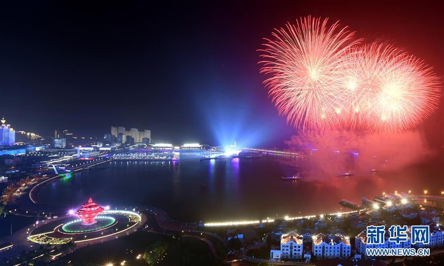 6月9日至10日,上海合作组织青岛峰会在山东青岛召开。这是9日晚在青岛举行的《有朋自远方来》灯光焰火艺术表演。 新华社记者金良快摄
