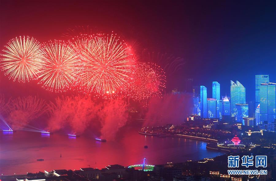 6月9日至10日,上海合作组织青岛峰会在山东青岛召开。这是9日晚在青岛举行的《有朋自远方来》灯光焰火艺术表演。 新华社记者普布扎西摄
