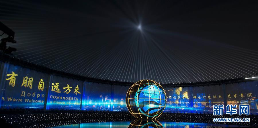 6月9日至10日,上海合作组织青岛峰会在山东青岛召开。这是9日晚在青岛举行的《有朋自远方来》灯光焰火艺术表演。 新华社记者李学仁摄