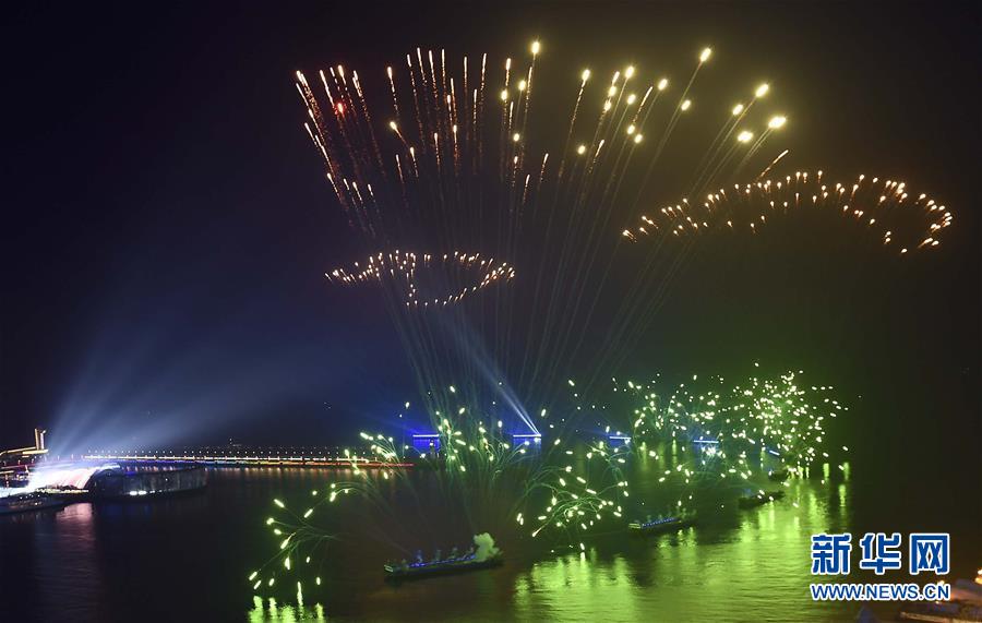 6月9日至10日,上海合作组织青岛峰会在山东青岛召开。这是9日晚在青岛举行的《有朋自远方来》灯光焰火艺术表演。 新华社记者郭绪雷摄