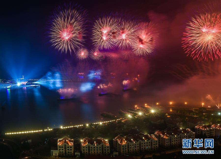 6月9日至10日,上海合作组织青岛峰会在山东青岛召开。这是9日晚在青岛举行的《有朋自远方来》灯光焰火艺术表演。 新华社记者徐昱摄