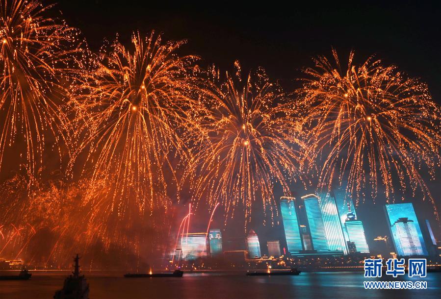 6月9日至10日,上海合作组织青岛峰会在山东青岛召开。这是9日晚在青岛举行的《有朋自远方来》灯光焰火艺术表演。 新华社记者朱峥摄