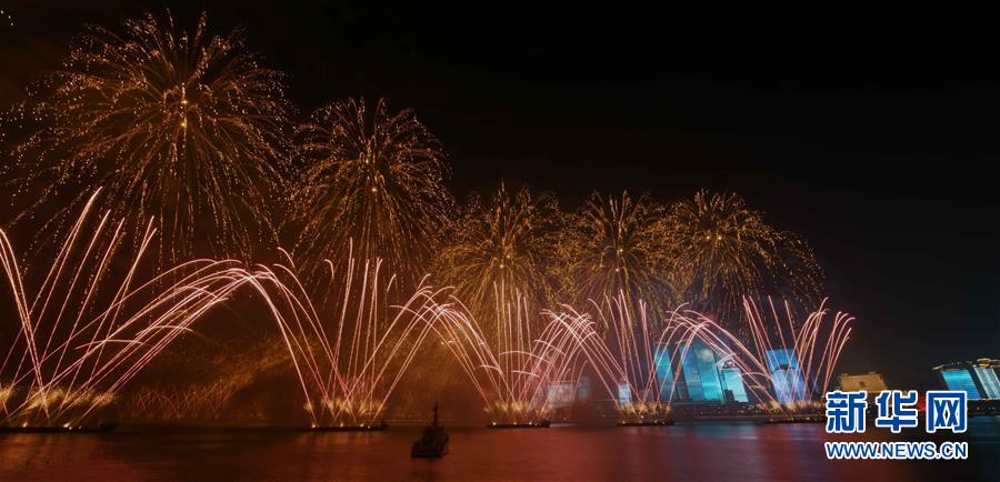 6月9日至10日,上海合作组织青岛峰会在山东青岛召开。这是9日晚在青岛举行的《有朋自远方来》灯光焰火艺术表演。 新华社记者朱峥摄