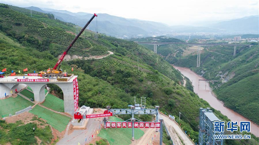 当日,由中铁四局承建的玉磨铁路(中老铁路中国段)元江特大桥进入钢桁梁安装阶段。元江特大桥位于云南省玉溪市境内,是中老铁路全线重点控制性工程。据了解,该桥集高墩、大跨于一体,其中最高桥墩达154米,主跨达249米,主桥采用上承式连续钢桁梁结构。新华社记者 胡超 摄