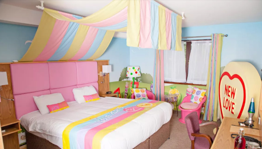 孩子们可以在格列佛酒店的Swizzels套房中进入一个充满自己喜爱的甜点的世界,如彩虹糖和清新饮品。