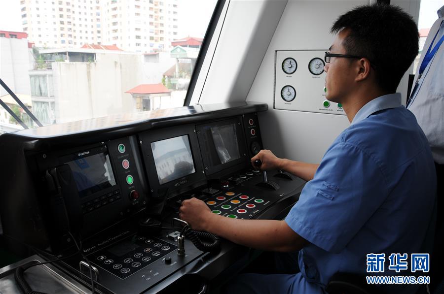 8月1日,在越南河内,驾驶员驾驶列车参与热滑测试。