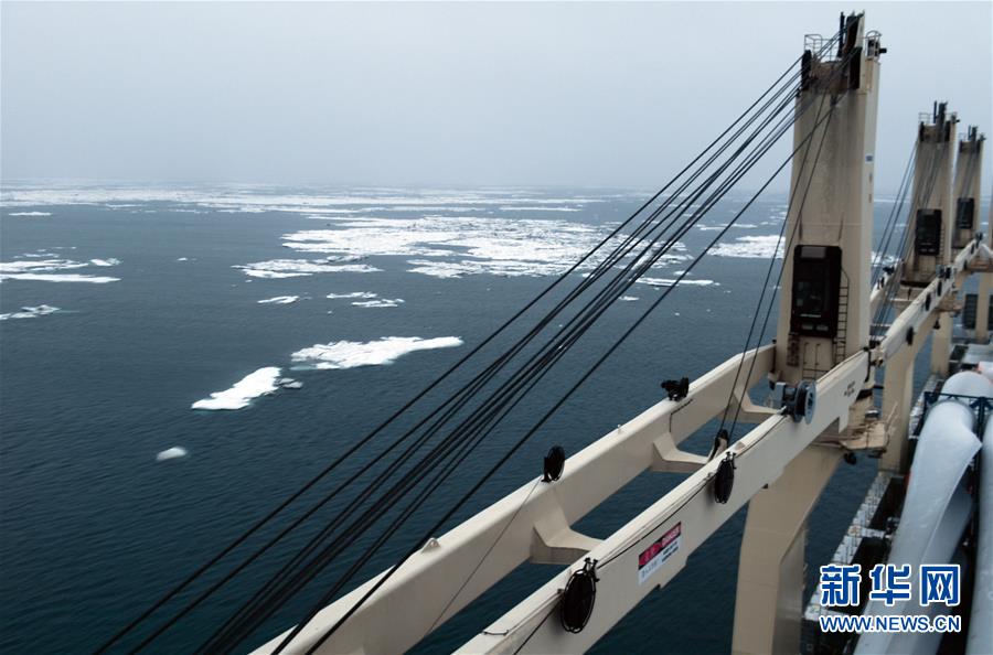 8月20日凌晨,在东西伯利亚海域,中国“天恩”号货轮穿过大面积浮冰。 首次出征“冰上丝绸之路”的中国“天恩”号货轮20日凌晨在北极圈首次迎来飘雪,在大面积的浮冰“夹击”中微速碰撞前行。 新华社记者刘红霞摄