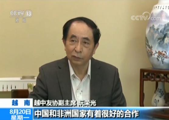 越中友协副主席 阮荣光:对于中非合作论坛我有关注,中国和非洲国家有着很好的合作,很多非洲国家也加入到了共建“一带一路”中来。我希望“一带一路”能够与“两廊一圈”成功对接,能让越南同非洲、欧洲各国实现更便捷的相互对接,我相信未来越南与非洲各国也能实现更紧密的合作。