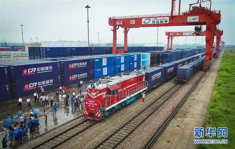当日,随着X8044次中欧班列(汉堡—武汉)到达武汉吴家山铁路集装箱中心站,中欧班列累计开行数量达到10000列。 自2011年开行以来,中欧班列快速发展,规模数量呈现井喷式增长。目前,中欧班列已成为“一带一路”建设的标志性成果,被喻为“一带一路”上的“钢铁驼队”。( 新华社记者 肖艺九 摄)
