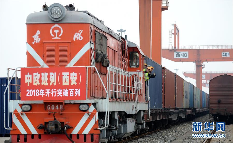 从陕西西安新筑车站开往德国汉堡的X8001次中欧班列发车(3月7日摄)。