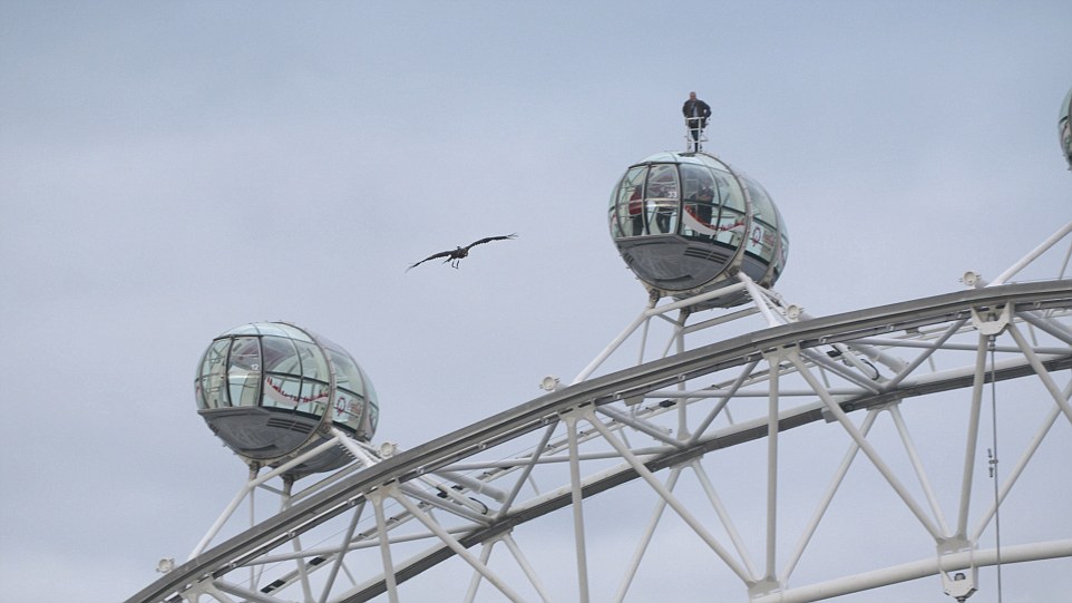 将摄像机安装到真正的鸟身上拍摄伦敦鸟瞰图。