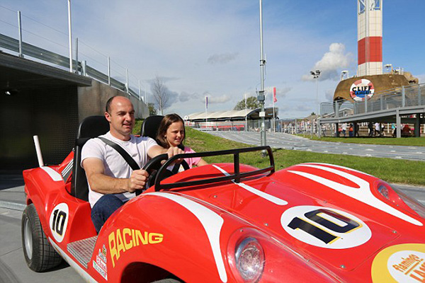 家庭成员可以在超过380米的赛道上驾驶双座家庭赛车。