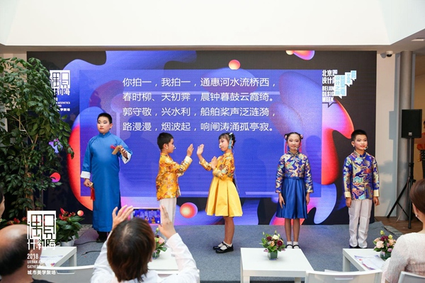 “你拍一,我拍一,通惠河水流桥西,春时柳,天初霁,晨钟暮鼓云霞绮……”来自西城区金融街少年宫的4位少年儿童,一边拍着手,一边唱着关于什刹海的童谣,给全场带来了很多天真童趣。