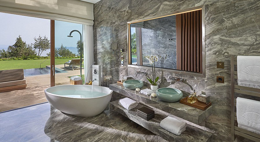 意大利建筑师Antonio Citterio的室内设计超凡时尚,巨大的套房,独立式浴缸和耸立的天花板。