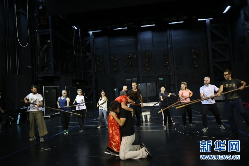 10月4日,《赵氏孤儿》排演剧照之一。新华网发 马里奥斯·罗洛斯 摄