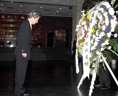 2001年10月8日,前来中国进行为期一天工作访问的日本首相小泉纯一郎参观北京西南的卢沟桥和中国人民抗日战争纪念馆。小泉纯一郎在中国人民抗日战争纪念馆有抗日军民持枪肃立的“血肉长城”巨幅雕塑前鞠躬、献花圈,并默哀。这是日本政府首脑第一次在这里献花圈,也是第一位在任的自民党首相前来中国人民抗日战争纪念馆参观。他在讲话中对因那场侵略战争而死难的中国人民表示“衷心的道歉和哀悼”。