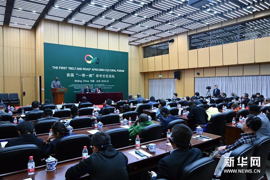 这是首届“一带一路”非中文化论坛现场(10月24日摄)。 当日,首届“一带一路”非中艺术交流展暨非中文化论坛在中国国家图书馆举行。本次展览以“走进肯尼亚·感知新非洲”为主题,参展的110余幅作品中有近一半出自40余位非洲艺术家之手。参加非中文化论坛的嘉宾围绕深化“一带一路”倡议下的非中文化交流进行了发言。 新华社记者陈晔华摄