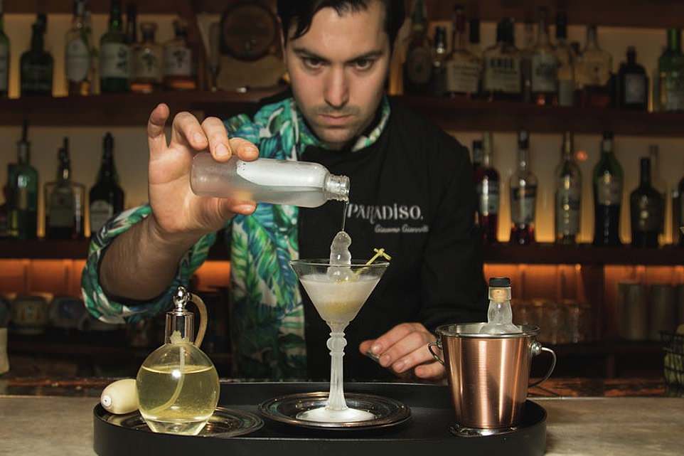 Paradiso酒吧的调酒师正在调制鸡尾酒。