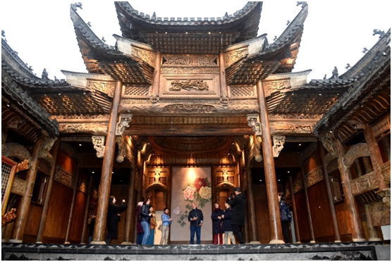 这其中,位于湖心岛上有着四百多年历史的龙尾古宅,引来了上合组织一行人的阵阵惊叹:那屋脊上的瑞兽,梁柱上精美绝伦的雕刻,窗格上繁琐复杂的工艺,以及气势恢宏的古戏台,无不展示着过去巧夺天工的技艺。看到这样的老宅子,俄罗斯博物馆馆长弗拉基米尔·古瑟夫激动不已,在古戏台上忍不住亮了一嗓子,还对马国湘先生感慨,希望这样好的文物有机会也能到俄罗斯去展览,让俄罗斯人民也有机会感受到中国优秀传统文化。