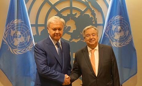阿利莫夫是在与联合国秘书长古特雷斯于纽约联合国秘书处大楼举行会面期间,向联合国图书馆赠送《上海合作组织宪章》六语种图书的。会面期间,双方讨论了上合组织和联合国以及下属相关机构的合作现状以及未来务实合作前景。