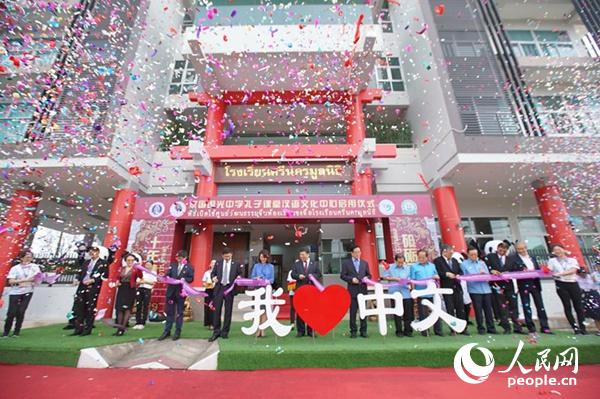 人民网曼谷12月15日电(记者孙广勇)泰国国光中学孔子课堂13日隆重举办成立十周年庆祝系列活动。中国西南大学校长张卫国、孔子学院总部/国家汉办驻泰国代表王会昌、泰国南部华文民校联谊会主席张俊贵和泰南政界、教育界、侨界代表等见证该孔子课堂与泰国南部22所中小学和职业学院签订了2019-2024合作协议书,并与中国驻宋卡总领事馆领事冯笑共同为该孔子课堂“汉语文化中心”大楼启用剪彩。