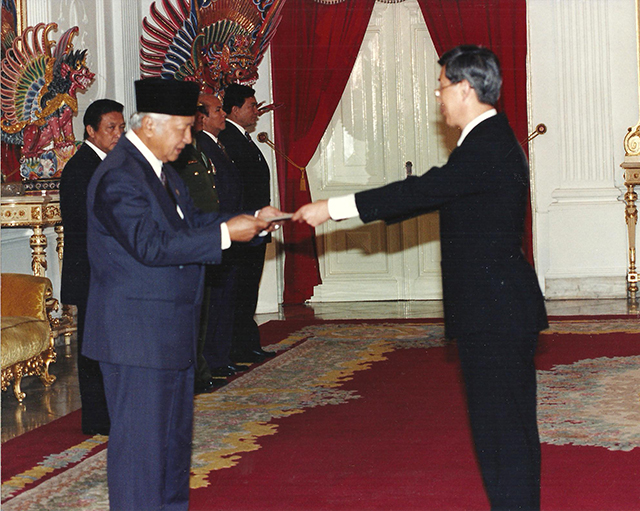 1995年9月27日,周刚大使向印尼总统苏哈托递交国书(图片由受访者提供)