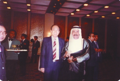 1986年,时任中国驻科威特使馆参赞的刘宝莱与当时的科威特外交部政治司副司长阿里合影。