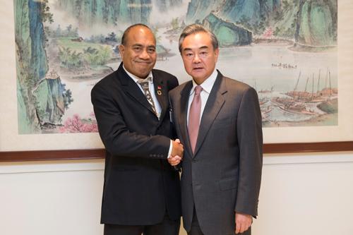 当地时间2019年9月25日,国务委员兼外长王毅在纽约出席联合国大会期间会见基里巴斯总统兼外长马茂。图片来自外交部网站