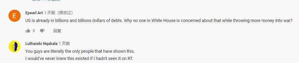 在Ruptly国际通讯社发布的一条“美国反战抗议者在时代广场谴责特朗普”的新闻下,网友纷纷表示美国媒体刻意隐瞒有关抗议报道、收取了高额税款却用来投资军事发动战事。