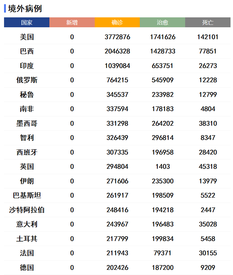 全球疫情要览(7月6日)美国确诊超287万 南非单日新增创新高