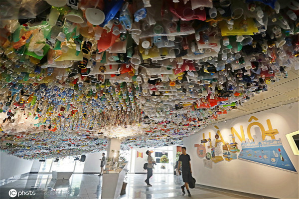 当地时间2019年7月16日,越一场名为“减少垃圾”(Reduce the Litter)的艺术展览在越南河内法国文化中心举行。图片来源:IC Photo