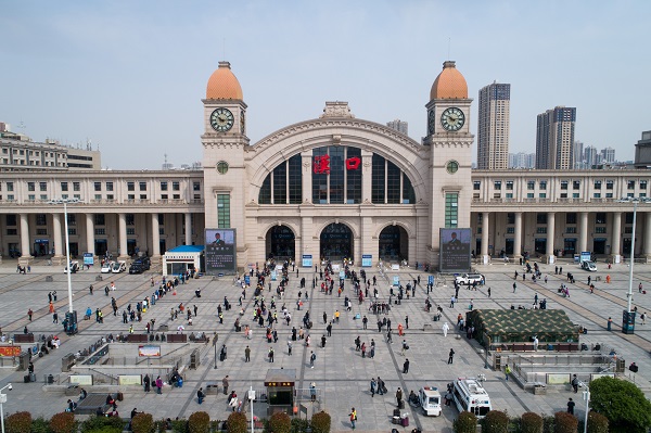 4月8日,乘客在汉口火车站排队进站。 当日零时起,武汉市正式解除离汉离鄂通道管控措施,有序恢复对外交通。 新华社记者 肖艺九 摄