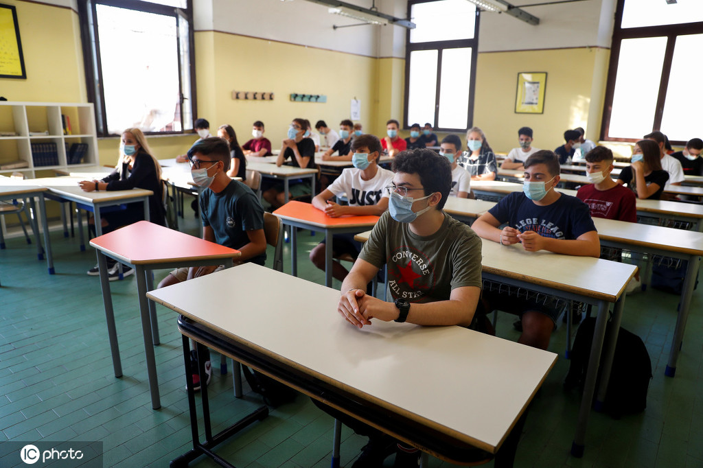 当地时间2020年9月14日,意大利罗马,学生时隔六个多月后返回校园上课。(IC photo 版权作品,请勿转载)