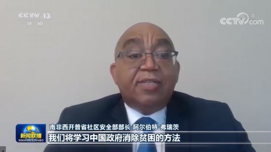 南非西开普省社区安全部部长 阿尔伯特·弗瑞茨:我们将学习中国政府消除贫困的方法,看看我们如何利用南非的资源,真正彻底消除我们国家的贫困,衷心祝贺中国取得的减贫成就。