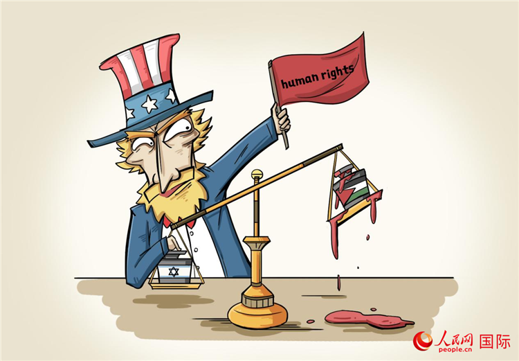 “双标”是美国在人权问题上混淆视听的重要工具。在近期的巴以冲突中,美国不顾加沙人道主义危机“拉偏架”,利益至上偏袒以方,激化双方矛盾,阻挠和平进程。