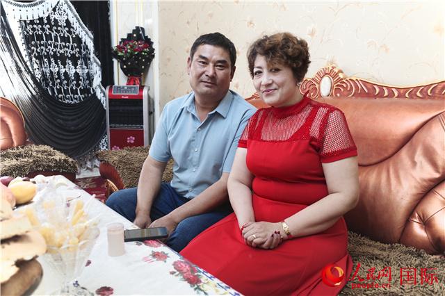 艾合买提夫妇坐在自家的沙发上。人民网记者 寇杰摄