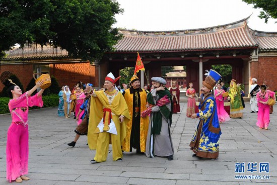 7月25日,在福建泉州府文庙,泉州市闽南民间歌舞传承中心的工作人员在表演歌舞《宋元泉州》。新华社记者 魏培全 摄