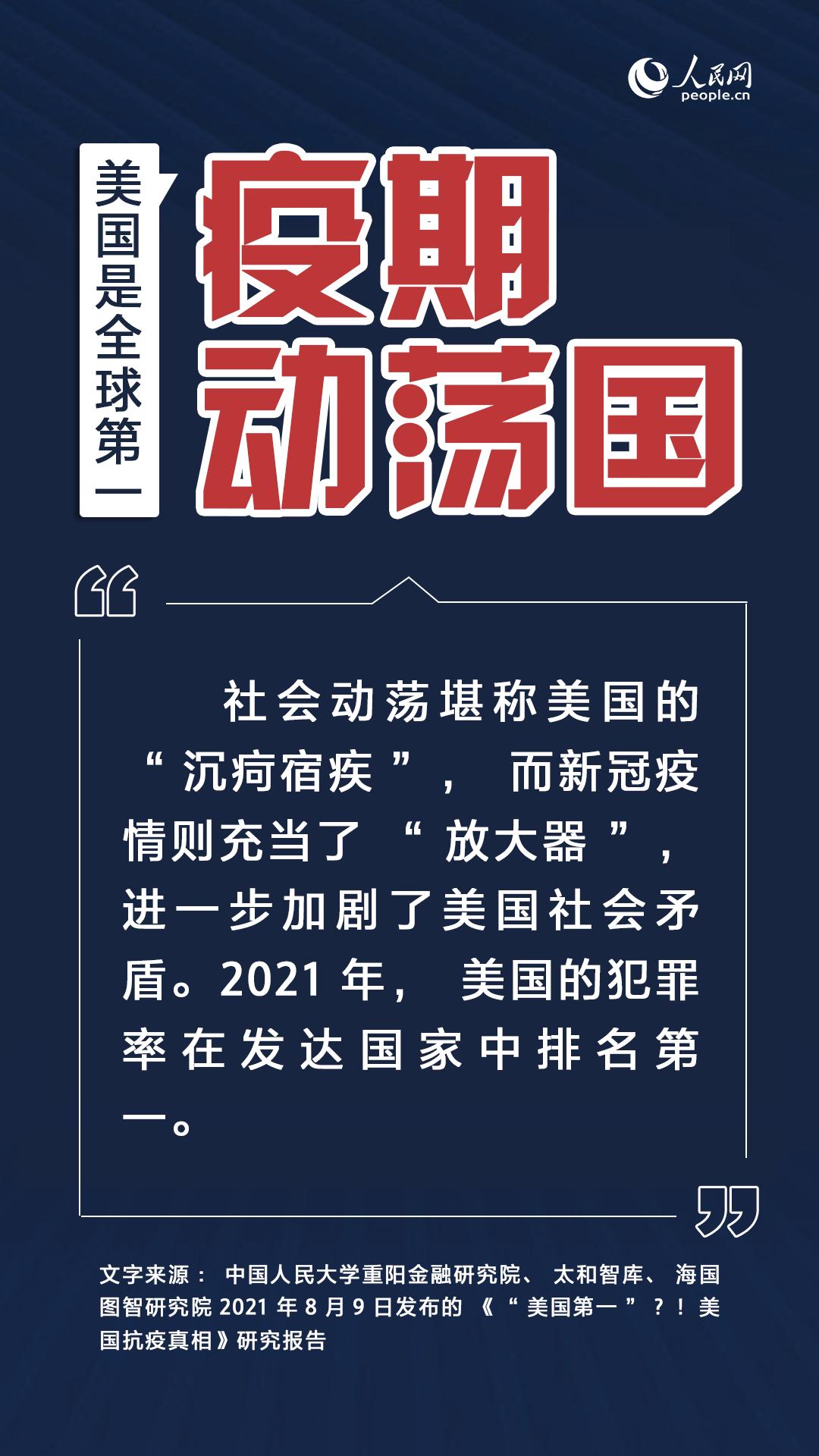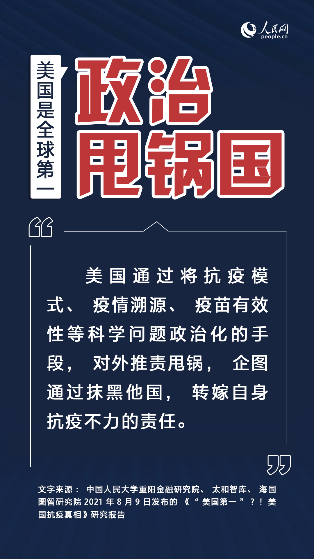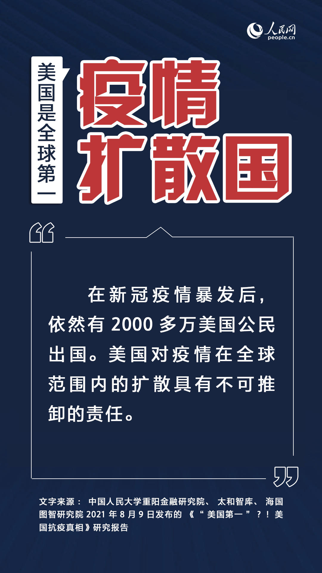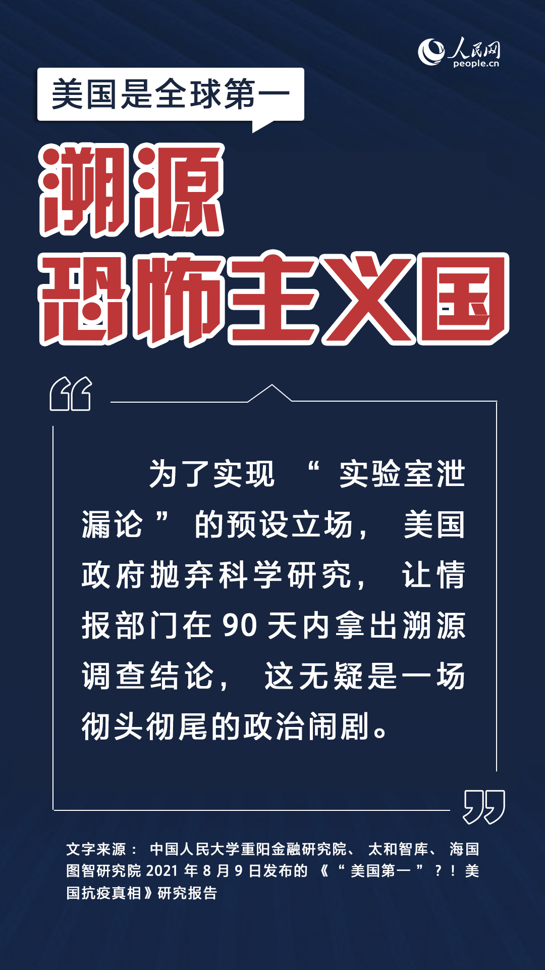 报告指出,客观的事实已表明,美国是当之无愧的全球第一抗疫失败国、全球第一政治甩锅国、全球第一疫情扩散国、全球第一政治撕裂国、全球第一货币滥发国、全球第一疫期动荡国、全球第一虚假信息国、全球第一溯源恐怖主义国。