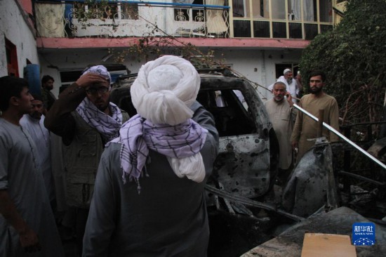 8月29日,在阿富汗首都喀布尔国际机场附近居民区,人们查看火箭弹袭击现场。 新华社发(塞夫拉赫曼·萨菲摄)