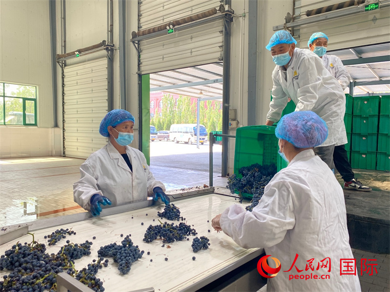 闽宁镇当地居民在葡萄酒车间工作。人民网 苏缨翔摄