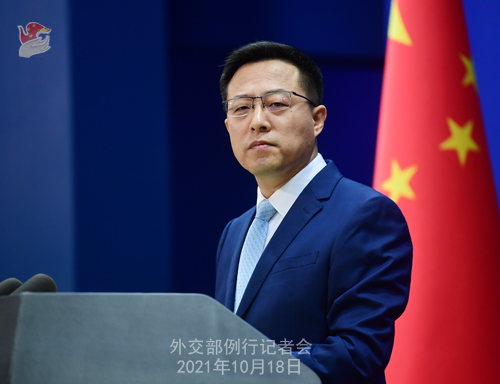 人民网北京10月18日电 据外交部网站消息,外交部发言人赵立坚主持今日例行记者会。记者会实录如下:
