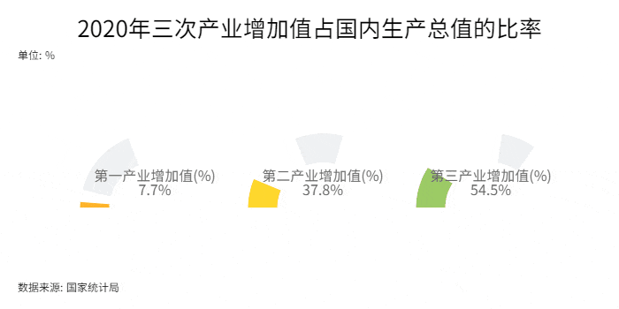 2020年三次产业增加值占中国国内生产总值的比率。制图:崔译戈