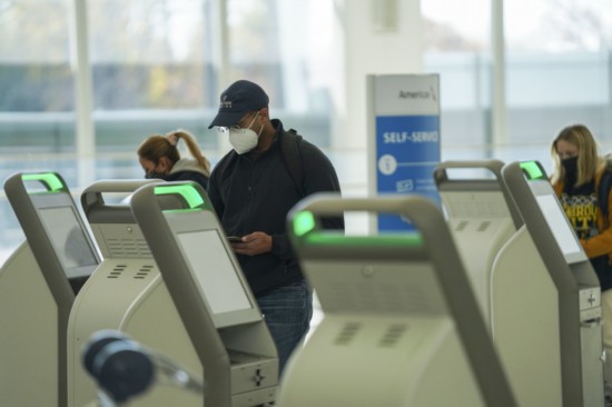 11月24日,乘客在美国纽约拉瓜迪亚机场办理乘机手续。新华社记者 王迎 摄