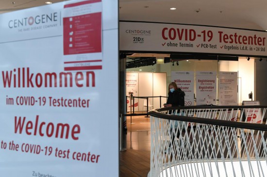 11月19日,在德国法兰克福,一名女子经过一家商场内的新冠病毒检测中心。新华社记者 逯阳 摄