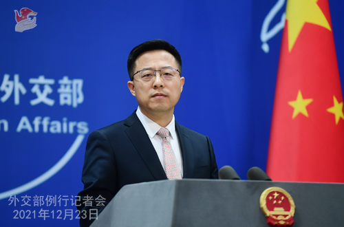 人民网北京12月23日电 据外交部网站消息,外交部发言人赵立坚主持今日例行记者会。记者会实录如下:
