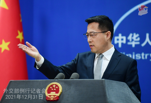 人民网北京12月31日电 据外交部网站消息,外交部发言人赵立坚主持31日例行记者会。记者会实录如下: