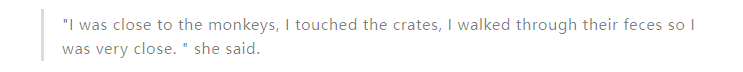 “我离猴子很近,我摸过箱子,还从它们的粪便上走过......”